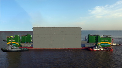 2016年11月30日,韓通、海洋再次聯(lián)合中標(biāo)溫州甌江口大橋鋼沉箱項(xiàng)目。兩司聯(lián)合進(jìn)入海上風(fēng)電領(lǐng)域后,再次進(jìn)入中鐵鋼構(gòu)工程。此項(xiàng)目為溫州甌江北口大橋主橋中塔基礎(chǔ)鋼沉井,長66*寬55*高59米,自重1.8萬噸,工期180天,集團(tuán)利用自身資源完成制作、合攏、海上浮運(yùn)到現(xiàn)場錨固等項(xiàng)目工程。