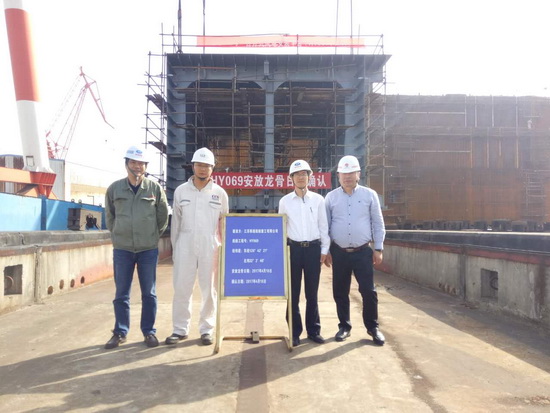 海洋自升式風(fēng)電安裝平臺(船體號:HY69)順利安放龍骨