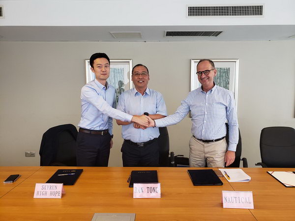 2018年7月25日,我司為德國公司建造的74000噸油輪(船體號:HT-OT74-007)順利簽字交船,該船入LR船級社。公司領(lǐng)導(dǎo)、船東、貿(mào)易商代表參加該儀式。