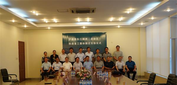 2020年6月16日,滬通西長江綠洲(啟動區(qū))韓通重工整體搬遷交接儀式在韓通廠區(qū)正式舉行。通州區(qū)及五接鎮(zhèn)領(lǐng)導(dǎo)、公司領(lǐng)導(dǎo)在搬遷交接書上簽字并互換協(xié)議,預(yù)示著韓通重工搬遷工作的圓滿結(jié)束。