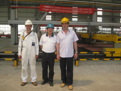 2009年6月1日上午十點(diǎn),韓通重工二期切割中心傳來陣陣鞭炮聲,我公司為德國船東建造的57000噸散貨輪(HT033)的開工儀式在此舉行。韓通重工代表陳興、船東代表 Vladimir Babic和LR代表Peter等人共同迎接了這激動(dòng)人心的時(shí)刻。