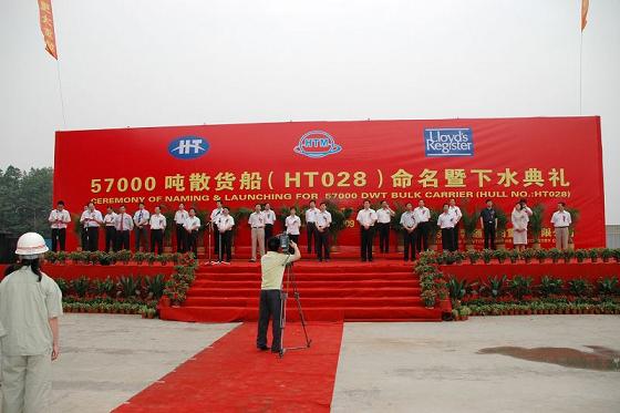 新韓通第一艘57000噸散貨輪(HT028)順利下水