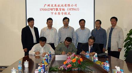 下水畢,三方代表共同簽署該船下水的節(jié)點(diǎn)進(jìn)度文件。