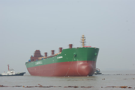 我司為巴哈馬船東Sonoma Shipping Company Limited建造的57000噸散貨輪(船體號HT065)與2010年5月4日早上7:00在我司2號船臺舉行下水儀式,該船入英國勞氏船級社,計劃于2010年7月中旬交船。