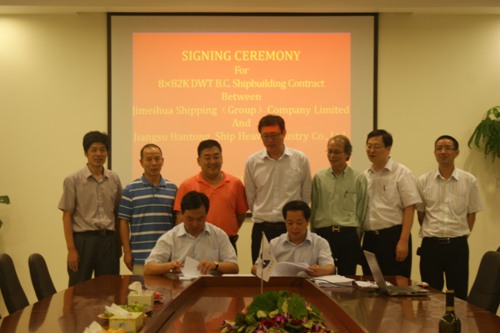 2010年7月5日,江蘇韓通船舶重工有限公司在其保持大批量57000噸散貨輪項目合同簽訂的同時,與國內(nèi)船東簽訂了4+4艘82000噸散貨輪的建造合同,首制船將于2012年5月交付。目前各項工作均已全面展開,相信這將是韓通造船另一系列船型的良好開端。