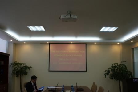 2010年8月19日,我司為PD船東建造的第10艘57000DWT散貨輪(船體號(hào)HT033)于下午4點(diǎn)在2號(hào)會(huì)議室舉行了交船簽字儀式,陳林軍常務(wù)副總與船東代表出席了該儀式。