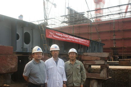 我司為大新船東建造的57000噸散貨輪(船體號HT071)于2010年10月9日下午 14:30在我司1號船臺舉行了上臺儀式,該船入ABS船級社。韓通重工副總李繼念及船東、船檢代表參加該儀式。