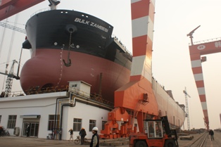 我司為意大利船東COECLERICI集團(tuán)建造的55000噸自卸散貨船(船體號(hào)HT080)于2011年1月22日下午17:00在我司3#船臺(tái)舉行命名及下水儀式,該船入意大利船級(jí)社,被命名為“BULK ZAMBESI”,代理公司為蘇美達(dá)貿(mào)易公司。HT080為該項(xiàng)目系列船中的第1條,將于2011年交付船東。武亦文總經(jīng)理,陳林軍常務(wù)副總,陳興副總,船東代表及船級(jí)社代表參加該儀式。