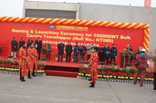 55000噸自卸散貨輪(船體號(hào)HT080)命名及下水儀式