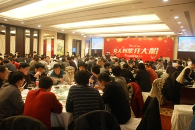 2011年1月27日晚,文景國(guó)際大酒店宴會(huì)大廳燈火璀璨,流光溢彩,由南通市海洋水建工程有限公司、江蘇韓通船舶重工有限公司、江蘇新韓通船舶重工有限公司、南通中冶船舶配套有限公司及文景國(guó)際大酒店共同舉辦,以“眾人劃槳開大船”為主題的新春團(tuán)拜會(huì)正在舉行。歡快的音樂縈繞在耳畔,滿場(chǎng)的紅色襯托出喜慶的氣氛,讓整個(gè)會(huì)場(chǎng)籠罩在歡騰之中。