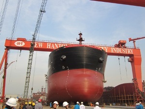2011年3月17日下午4:28,我司為寶源國(guó)際有限公司建造的第三艘57000噸散貨輪(船體號(hào):HT084)在新韓通船臺(tái)順利下水,該船入DNV船級(jí)社。