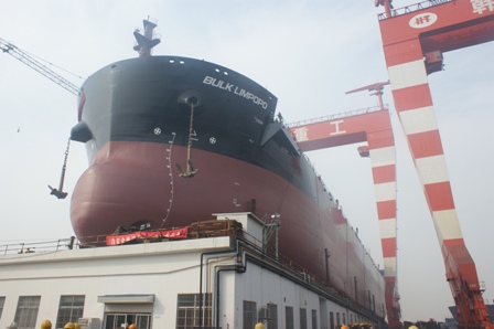 55000噸自卸散貨輪(船體號HT081)命名及下水儀式