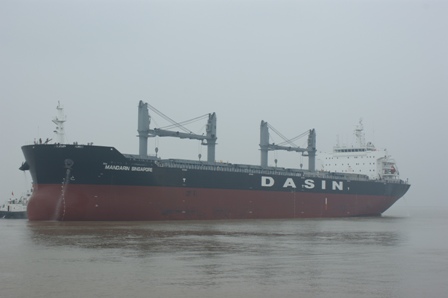 2011年7月8日,我司為大新建造的57000噸散貨輪(HT068)經過為期4天的試航試驗后,圓滿試航歸來,入LR船級社。此次試航順利完成各項交驗項目,并達到船東、船檢的要求,圓滿完成了該船的試航任務。