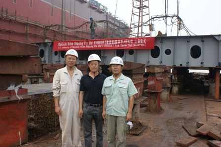 我司為大新船東建造的57000噸散貨輪(船體號:HT030)于2011年8月3日在我司1號船臺舉行了上臺儀式,該船入BV船級社。李繼念副總及船東船檢代表參加了該儀式。