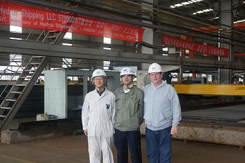 2011年10月31日,我司為Eagle Bulk船東建造的57000噸散貨輪(船體號:HT097)開工儀式在韓通新船體車間順利舉行,該船入LR船級社。潘學軍副總及船東、船級社代表參加了該儀式。