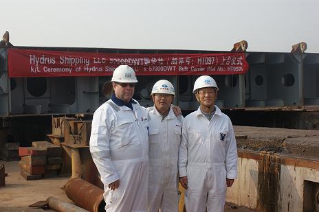 我司為Eagle Bulk船東建造的57000DWT散貨輪(船體號:HT097)于2011年11月25日上午10:00在我司3號船臺舉行了上臺儀式,該船入LR船級社。李繼念副總及船東船檢代表參加了該儀式。