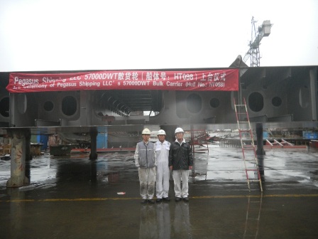 我司為Eagle Bulk 船東建造的57000DWT散貨輪(船體號(hào):HT098)于2011年12月30日在我司舉行了上臺(tái)儀式,該船入LR船級(jí)社。李繼念副總及船東船檢代表參加了該儀式。