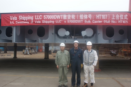 我司為 Eagle Bulk 船東建造的57000DWT散貨輪(船體號:HT107)于2011年12月20日在我司3號船臺舉行了上臺儀式,該船入LR船級社。李繼念副總及船東船檢代表參加了該儀式。