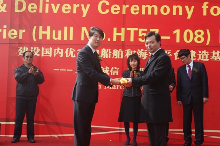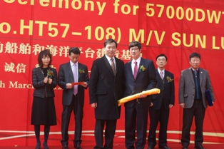 57000噸散貨輪(船體號:HT57-108)成功命名及交船