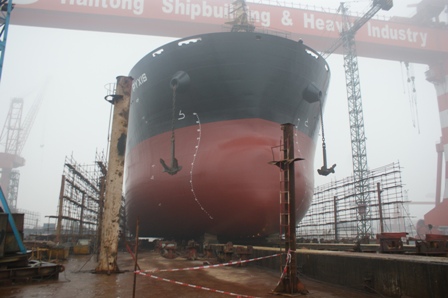 2012年12月15日,我司為Eagle建造的57000DWT散貨輪(HT099)在韓通1號(hào)船臺(tái)順利下水,該船入LR船級(jí)社。鄭錫山副總,船東代表及船級(jí)社代表參加該儀式。