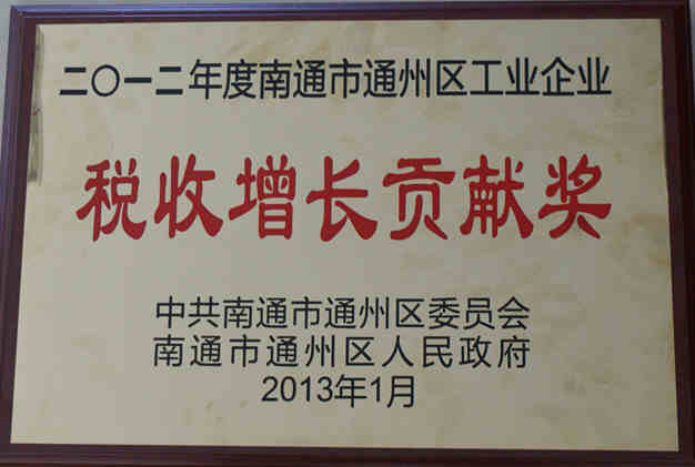 2013年1月31日,南通市通州區(qū)委、區(qū)政府組織召開了2012年度通州區(qū)納稅百?gòu)?qiáng)企業(yè)表彰大會(huì)。我司榮獲工業(yè)企業(yè)納稅總量貢獻(xiàn)獎(jiǎng)及稅收增長(zhǎng)貢獻(xiàn)獎(jiǎng)。