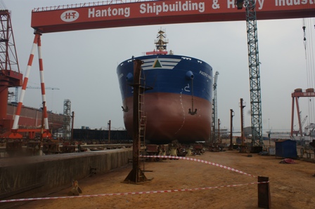 2013年6月10日,我司為韓國三星船東建造的57000DWT散貨輪(HT57-117)在韓通1號船臺順利下水,該船入KR船級社。周義慶副總經(jīng)理,船東代表及船級社代表參加該儀式。
