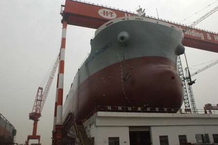 2014年5月28日,我司為日新建造的64000噸散貨輪(HT64-128)在韓通2號船臺成功下水,該船入BV船級社。船東代表及船級社代表參加該儀式。