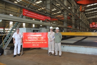2014年7月30日,我司為德國(guó)PD船東建造的38800噸散貨輪(船體號(hào):HT38-135)開工儀式在韓通新船體車間順利舉行,該船入LR船級(jí)社。高振成副總經(jīng)理及船東、船檢代表參加該儀式。