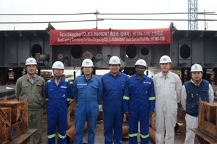 我司為日本船東NISSHIN建造的38800DWT散貨輪(船體號(hào):HT388-138)于2014年11月25日在我司3號(hào)船臺(tái)舉行了上臺(tái)儀式,該船入BV船級(jí)社。董繼紅總經(jīng)理助理及船東、船檢參加該儀式。