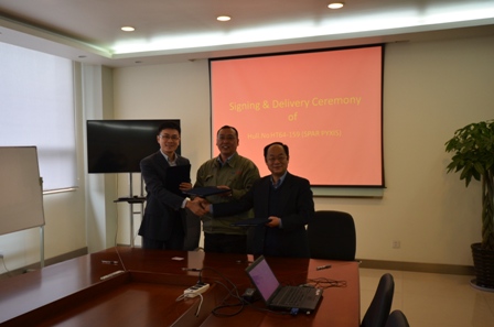 我司為挪威船東SPAR船東建造的64000噸系列散貨輪(船體號:HT64-159)達到了交船狀態(tài),2015年3月19日在韓通舉行交船簽字儀式,至此該船成功交船,入DNV·GL船級社。