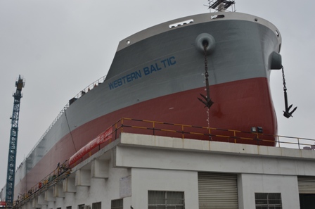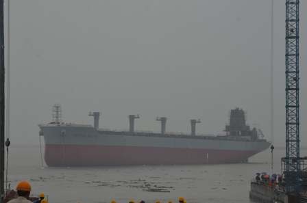 2015年4月6日,我司為日本船東NISSHIN建造的38800噸散貨輪(HT388-138)在韓通3號船臺成功下水,該船入BV船級社。