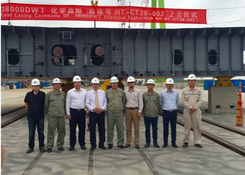 我司為船東中化船務(wù)建造的38000DWT不銹鋼化學(xué)品船(船體號(hào):HT38-002)于2015年9月22日在我司舉行了上臺(tái)儀式,該船入LR 和CCS船級(jí)社。船東、船檢參加該儀式。