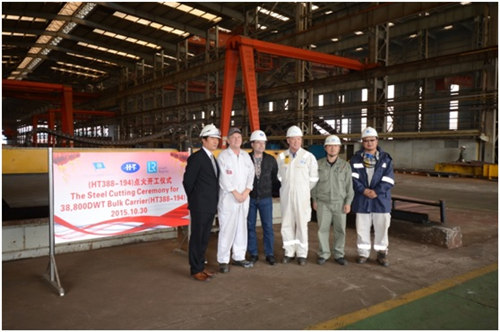 2015年10月30日,韓通為Nord船東建造的38800噸散貨輪(船體號(hào):HT388-194)開工儀式順利舉行,該船入LR 船級(jí)社。公司領(lǐng)導(dǎo)、船東、船級(jí)社代表參加該儀式。