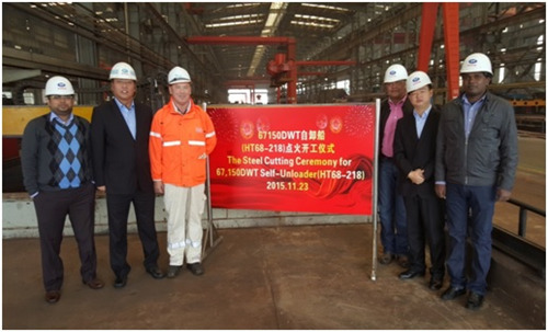 2015年11月23日,韓通為Vulica船東建造2條68000噸自卸船(船體號:HT68-218,HT68-219)同日開工,且順利舉行開工儀式,該船入LR 船級社。公司領導、船東、船級社代表參加該儀式。