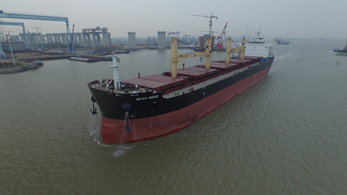 64000噸散貨輪(船體號(hào):HT64-166)圓滿試航歸來