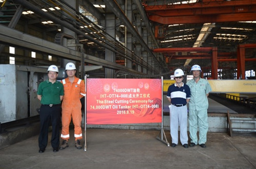 74000噸油輪(船體號(hào):HT-OT74-008)成功舉行開(kāi)工儀式