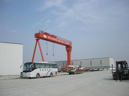 船臺(tái)門機(jī)已經(jīng)調(diào)試完畢,H028在船臺(tái)合攏。