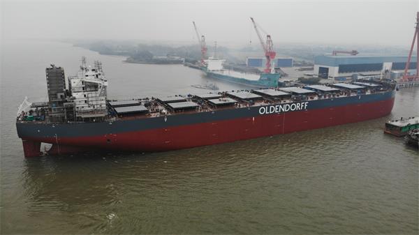 2020年12月2日上午,我司為德國(guó)Oldendorff船東建造的第二艘208000噸散貨輪 (船體號(hào):HT208-227)順利出塢。該船入級(jí)美國(guó)船級(jí)社。公司領(lǐng)導(dǎo)、船東、船檢代表參加了上述儀式。