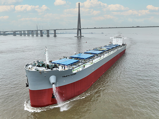 2023年6月2日,韓通為日本Nisshin船東建造的新批次第六艘82000噸散貨輪 “TRUSTN TRADER”(船體號(hào):HT82-250)成功簽字交船。