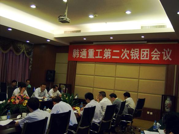 2009年6月12日,江蘇韓通銀團第二次會議召開。中國銀行南通分行,中國建設(shè)銀行南通分行、江蘇銀行南通分行、上海浦發(fā)銀行南通分行、江蘇光大有限公司等單位出席了會議。與會期間,江蘇韓通船舶重工有限公司、江蘇新韓通船舶重工公司高層領(lǐng)導(dǎo)向與會者詳細介紹了公司的生產(chǎn)經(jīng)營情況,并就加強銀企合作進行了交流。