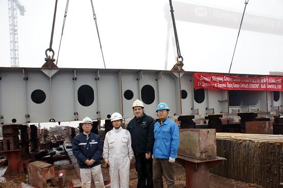 我司為巴哈馬船東Sonoma Shipping Company Limited建造的57000噸散貨輪(船體號HT065)于2010年1月31日上午10:00在2號船臺舉行上臺儀式,該船入英國勞氏船級社。韓通重工李繼念副總,格雷格駐廠項目經(jīng)理Martin Adams,英勞駐廠代表駱貴赟參加了該儀式。