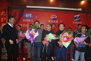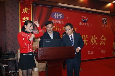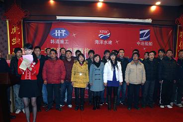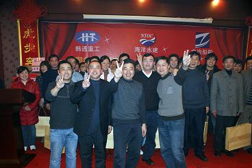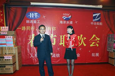 2010年2月8日晚,北辰大酒店宴會大廳燈火璀璨,流光溢彩,由韓通重工、海洋水建、中冶船舶、文景大酒店共同舉辦的,以“一路同行,感恩有你”為主題的迎春聯(lián)歡晚會正在舉行。歡快的音樂縈繞在耳畔,滿場的紅色襯托出喜慶的氣氛,讓整個會場籠罩在歡騰之中。晚會首先由孟董事長及四家公司高層領(lǐng)導(dǎo)進行了新春賀詞,接著備受矚目的優(yōu)秀員工、優(yōu)秀大學生、優(yōu)秀班組、優(yōu)秀施工單位和優(yōu)秀施工班組獎項在晚會上相繼頒出,此時在各工作崗位上辛勤工作了一年的同事們成了彩光燈下最耀眼的明星。晚會中現(xiàn)場抽獎讓晚會氣氛再次高漲,而特等獎液晶彩電的抽取更是將晚會的氣氛推向了最高點。大家歡欣鼓舞,熱情高漲,都沉浸在歡樂之中。