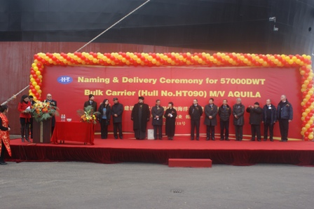 57000噸散貨輪(船體號(hào):HT090)成功命名及交船