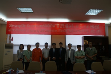 2013年7月1日,我司為韓國三星建造首艘57000噸散貨輪(HT57-116)成功交船,該船入KR船級社。于剛副總經(jīng)理及船東代表在我司會議室舉行交船簽字儀式,船東對此船建造給予很高的評價。至此,該船成功交付。