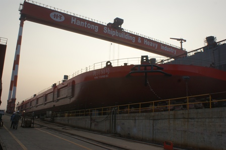 2013年10月23日,我司為海洋水建建造的駁船(HY051)在韓通1號船臺成功下水,該船入CCS船級社。周義慶副總經(jīng)理、船東代表及船級社代表參加該儀式。