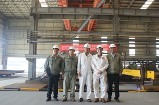 2013年10月28日,我司為日本 NISSHIN 船東建造的64000噸散貨輪(船體號(hào):HT64-128)開工儀式在韓通新船體車間順利舉行,該船入BV船級(jí)社。周義慶副總經(jīng)理及船東、船檢代表參加該儀式。