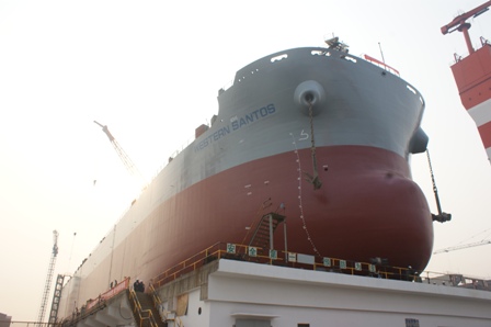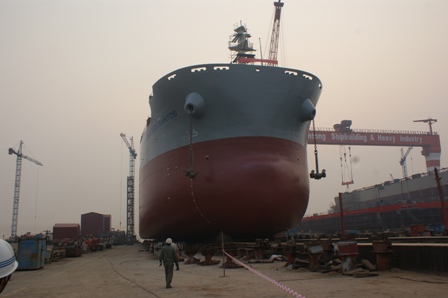 2014年1月17日,我司為日新建造的64000噸散貨輪(HT64-130)在韓通2號船臺成功下水,該船入BV船級社。周義慶副總經(jīng)理、船東代表及船級社代表參加該儀式。
