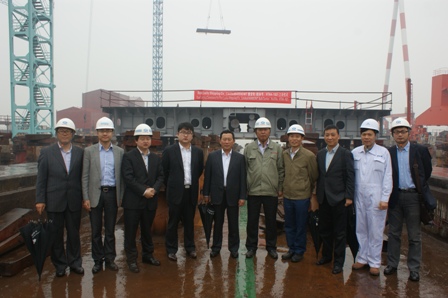我司為寶源船東建造的64000DWT散貨輪(船體號(hào):HT64-162)于2014年3月25日在我司2號(hào)船臺(tái)舉行了上臺(tái)儀式,該船入DNV.GL船級(jí)社。周義慶副總經(jīng)理及船東寶源總裁劉庚寶先生、船檢參加該儀式。