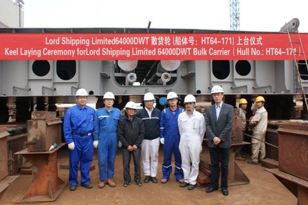 我司為船東lord公司建造的64000DWT散貨輪(船體號:HT64-171)于2014年3月31日在我司1號船臺舉行了上臺儀式,該船入NK船級社。高振成副總經理及船東、船檢參加該儀式。