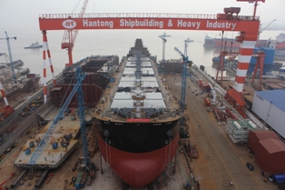 2014年8月30日,我司為FLEET船東建造的64000噸散貨輪(HT64-171)在韓通1號船臺成功下水,該船入NK船級社。周義慶副總經(jīng)理、船東代表及船級社代表參加該儀式。